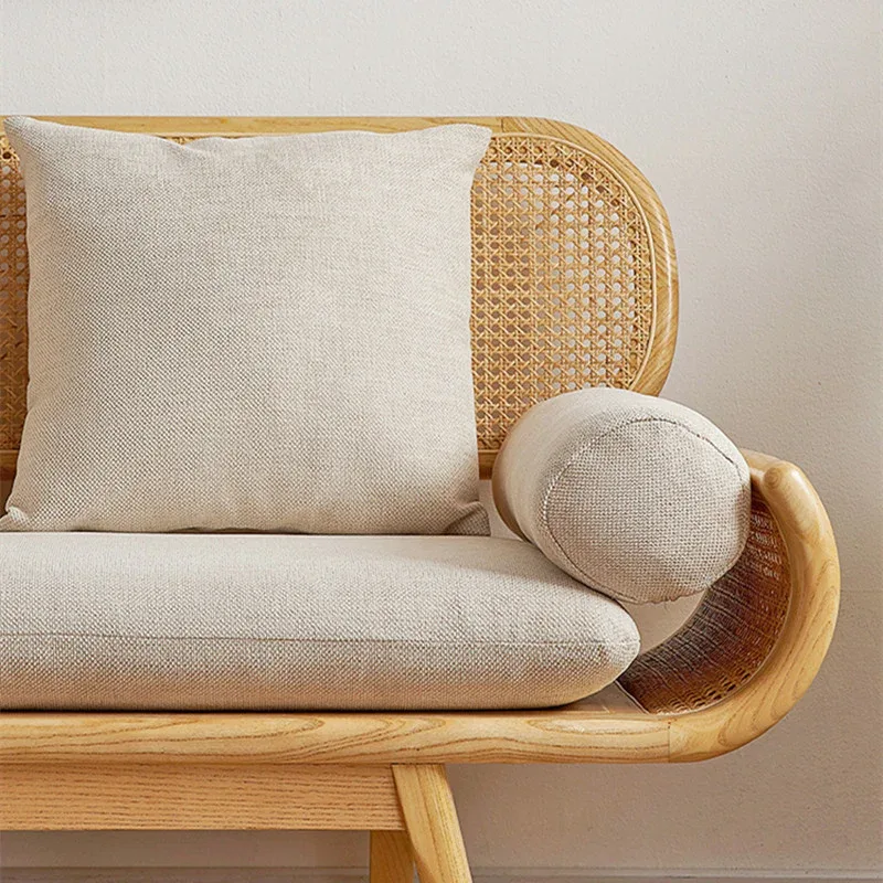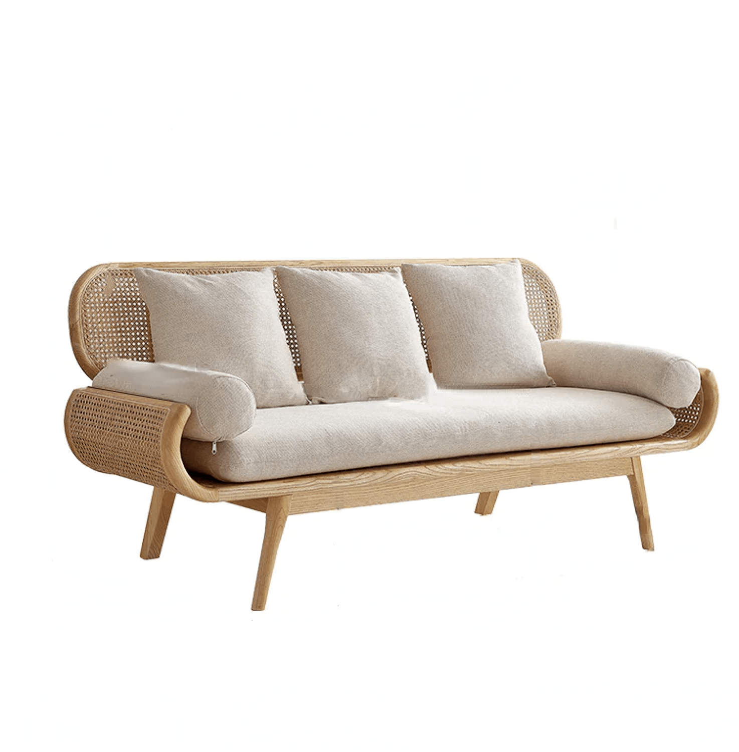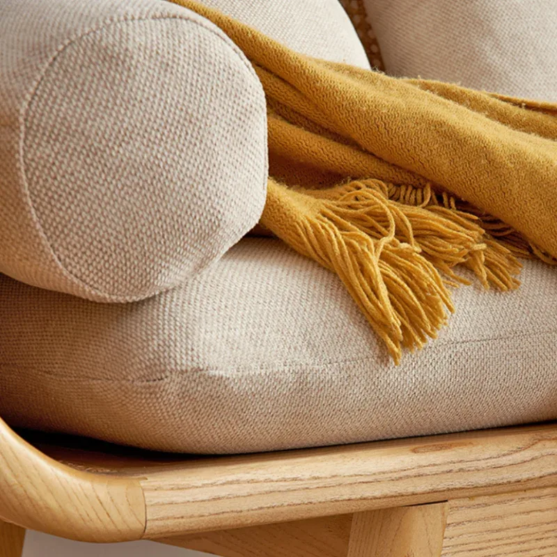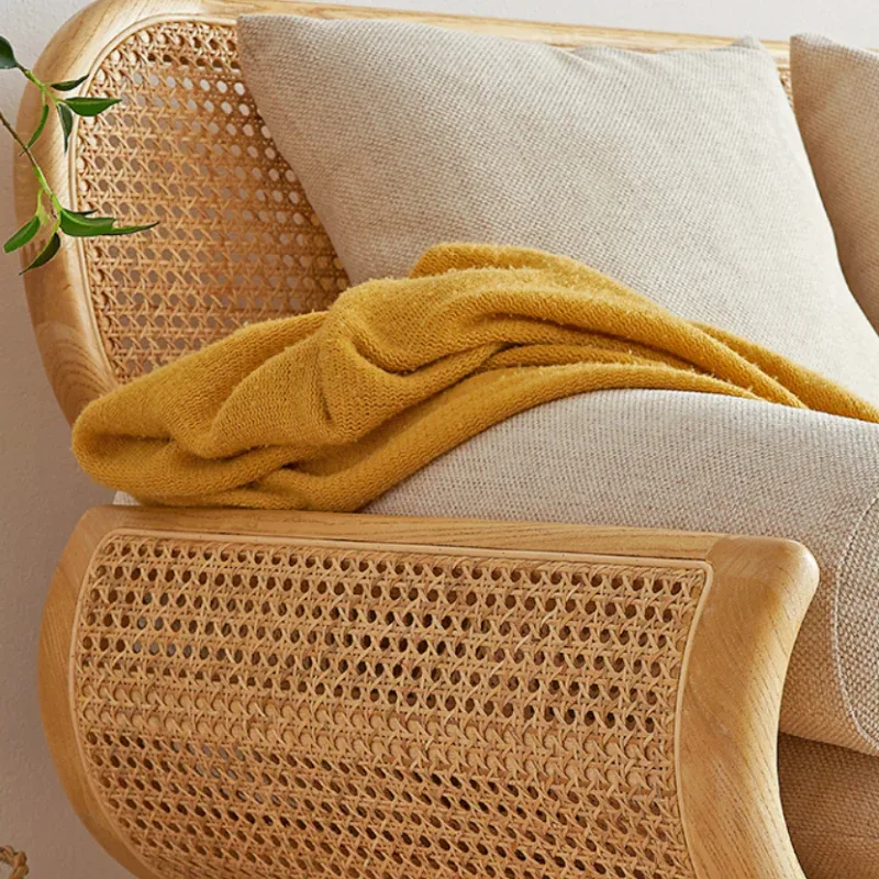 Linen Sand Luxe Fabric & Oak Timber Rattan Detailing